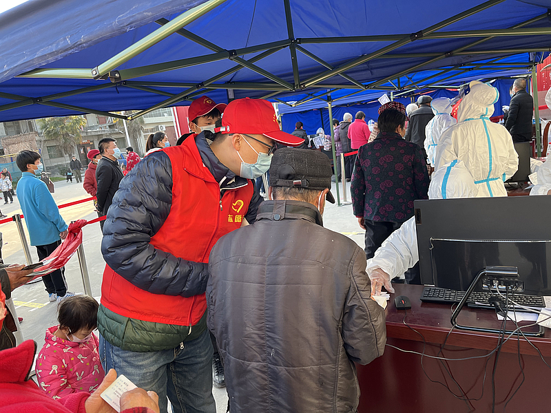 劉小龍引導(dǎo)群眾錄入核酸檢測信息