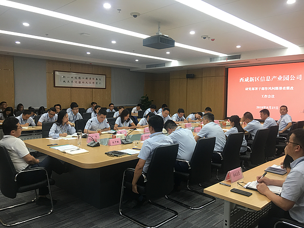 當(dāng)日晚上,新城干部作風(fēng)排查整改工作動(dòng)員部署大會(huì)結(jié)束后,公司立即組織召開干部員工內(nèi)部會(huì)議,迅速傳達(dá)了會(huì)議精神和新城相關(guān)工作方案,要求迅速成立工作領(lǐng)導(dǎo)小組,扎實(shí)開展干部作風(fēng)排查整改工作,隨后各部門、各子公司立即召開內(nèi)部會(huì)議,排查在作風(fēng)方面存在的問題,形成問題清單逐一安排整改,實(shí)行銷號(hào)管理,并第一時(shí)間公布新城舉報(bào)電話,全面接受入園企業(yè)的監(jiān)督。