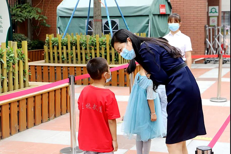 “孩子們,歡迎回家!”早上7點(diǎn)不到,老師們就守候在校門前,等待著許久不見的同學(xué)們。