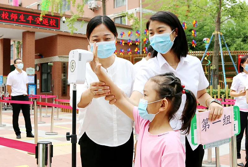 為了迎接同學(xué)們“回家”,西咸灃西第一小學(xué)、西咸新區(qū)灃西新城實(shí)驗(yàn)學(xué)校,早早就做好了準(zhǔn)備,防疫演練、校園消殺、常態(tài)防疫不放松,學(xué)生們按照引導(dǎo)佩戴口罩,一米間距,體溫檢測,整齊有序進(jìn)入校園。