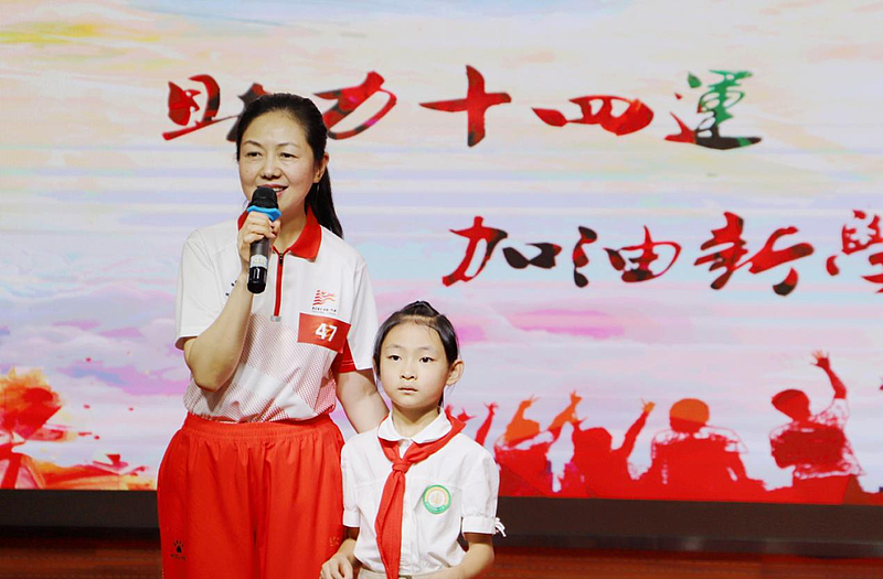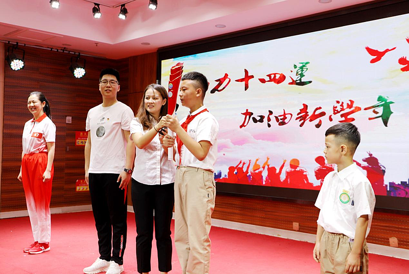 西咸灃西第一小學(xué)校長龔健輝,在以“助力十四運(yùn) 加油新學(xué)年”為主題的開學(xué)典禮上,分享了參加十四運(yùn)會和殘?zhí)貖W會火炬?zhèn)鬟f活動的難忘經(jīng)歷。