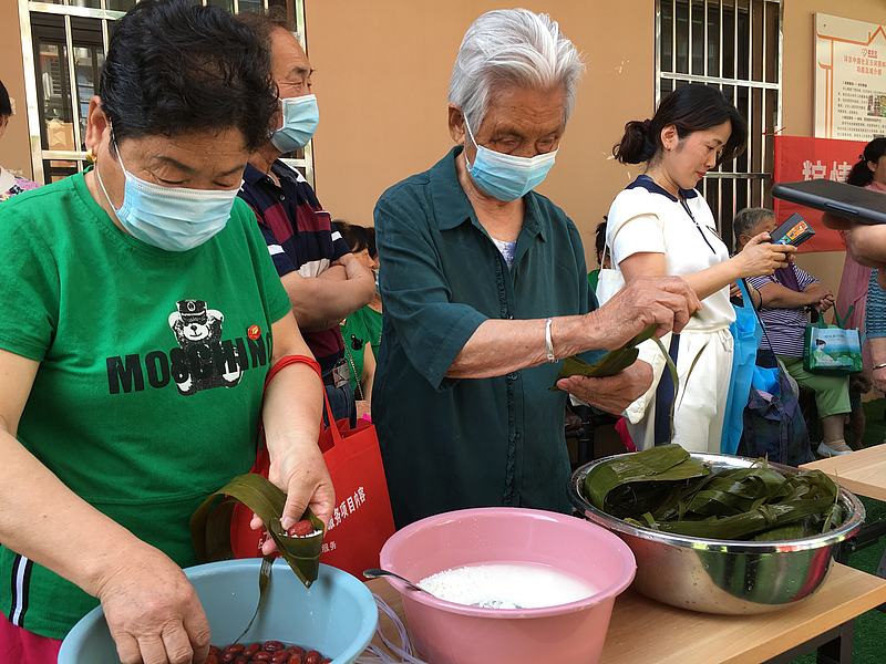 活動結束后,項目中心的工作人員將包好的粽子送到了園區孤寡老人的手中,并將提前準備好的香包分發給每位住戶,園區業主一起嘮著家常,一副其樂融融的景象。