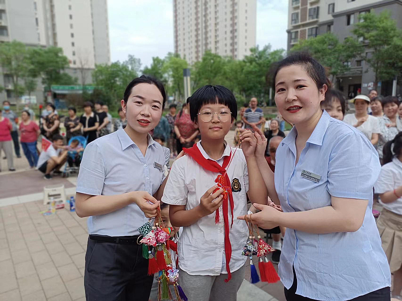 在灃西物業釣魚臺新村項目中心和創新港片區項目中心,項目工作人員把香包、粽子、花繩送到了園區業主和秦創原灃西建設指揮部、綜合執法大隊、大王街道等部門的工作人員手中,為他們送去了安康和祝福,營造了滿滿的儀式感。