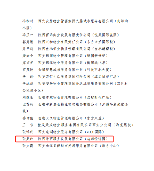近日,西安市物業(yè)管理行業(yè)協(xié)會(huì)經(jīng)過(guò)推選征集、專家評(píng)審、媒體公示等環(huán)節(jié),最終評(píng)選出145名“最美物業(yè)人”,并召開(kāi)表彰大會(huì)進(jìn)行表彰,灃西服務(wù)員工張美玲榮獲“最美保潔員”殊榮。