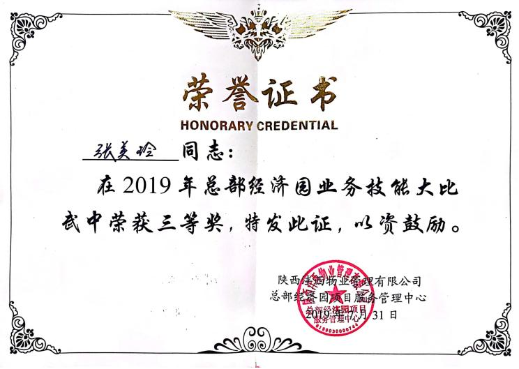 越努力越幸運(yùn)。張美玲在2019年7月總部經(jīng)濟(jì)園項(xiàng)目業(yè)務(wù)技能大比武中榮獲三等獎(jiǎng)、2020年8月總部經(jīng)濟(jì)園項(xiàng)目第二屆崗位技能比武中榮獲三等獎(jiǎng)、2021年5月公司技能大比武中榮獲個(gè)人賽“二等獎(jiǎng)”,同時(shí),張美玲在2020年、2021年連續(xù)兩年被公司評(píng)為年度“服務(wù)標(biāo)兵”。