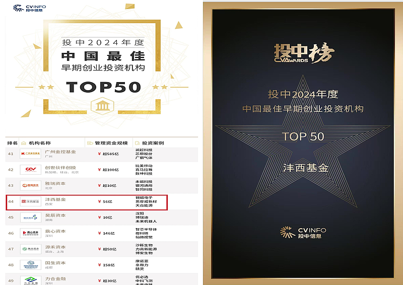 4月16日至18日,由國內(nèi)知名創(chuàng)投媒體投中信息投中網(wǎng)主辦的“第19屆中國投資年會·年度峰會”在北京隆重舉行,會上揭曉了備受行業(yè)矚目的“2024年度投中榜”,灃西集團(tuán)子公司——陜西灃西新城投資發(fā)展有限公司下屬企業(yè)西咸新區(qū)灃西新城基金管理有限公司(以下簡稱“灃西基金”)成功入選“中國最佳早期創(chuàng)業(yè)投資機(jī)構(gòu)TOP50”。