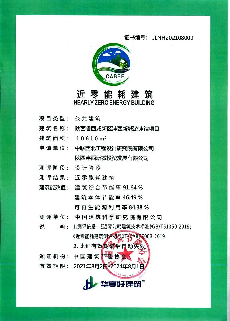 近日,西咸新區灃西新城游泳館項目,獲設計階段“近零能耗建筑”證書,標志著全國首個AAA級裝配式近零能耗游泳館,在灃西新城建成。這也是灃西新城踐行綠色發展理念積極探索“碳達峰碳中和”實現路徑又一力作。